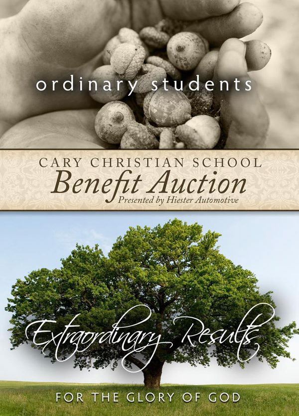 Save-the-Date mailer for Cary Christian School Benefit Auction. Designed with Photoshop.