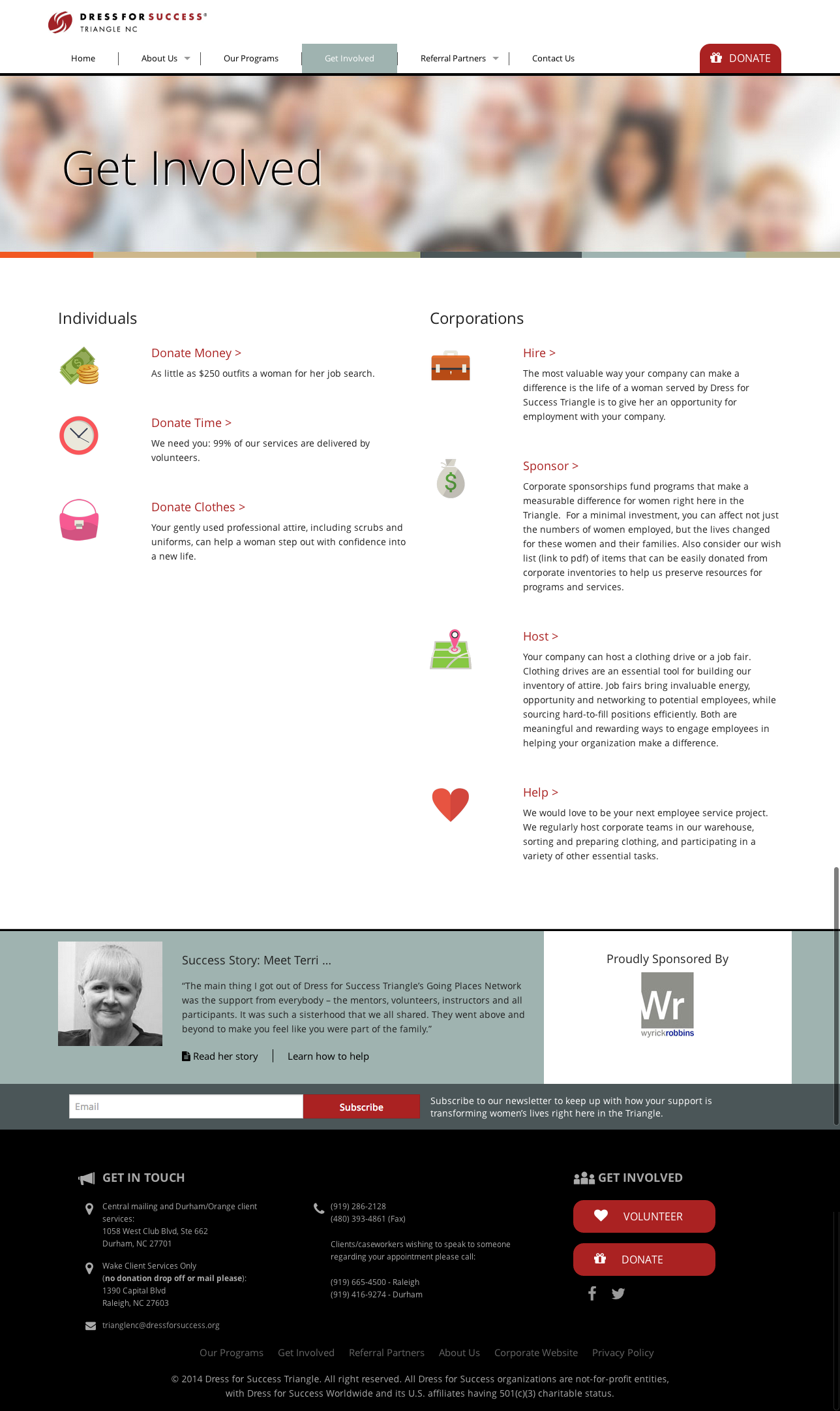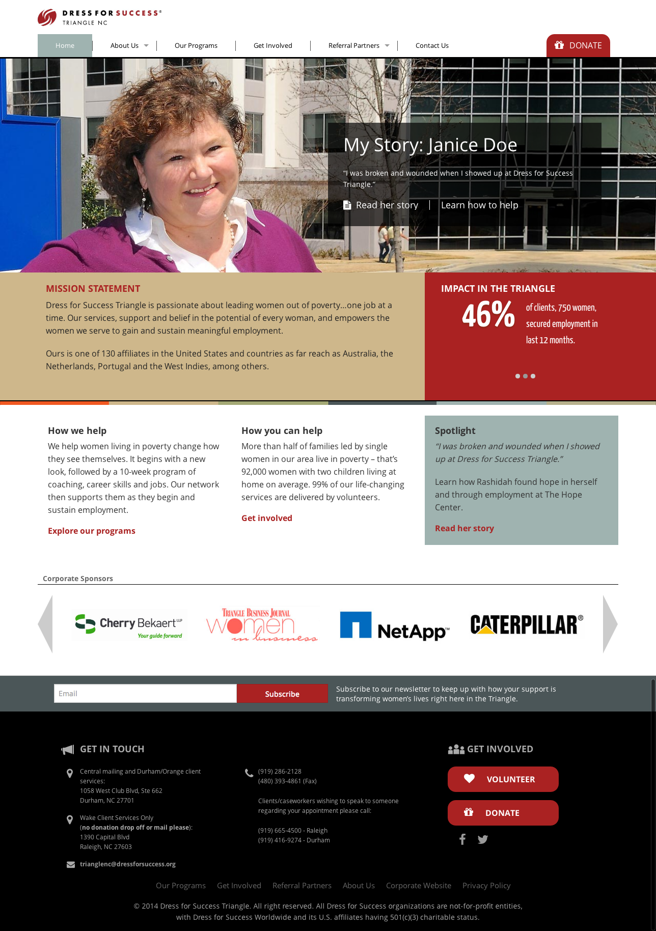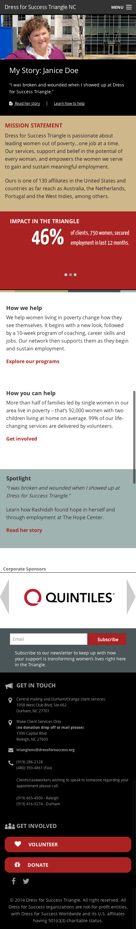 Fully responsive site design and Wordpress development for Dress for Success Triangle.